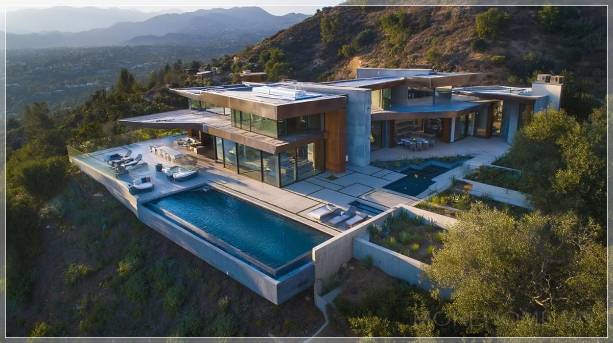 Từ độ cao nghìn mét, ngôi nhà này hiện lên như một tác phẩm điêu khắc kim loại khổng lồ, thách thức mọi định luật vật lý với thiết kế cantilever táo bạo và hồ bơi vô cực lơ lửng giữa không trung.