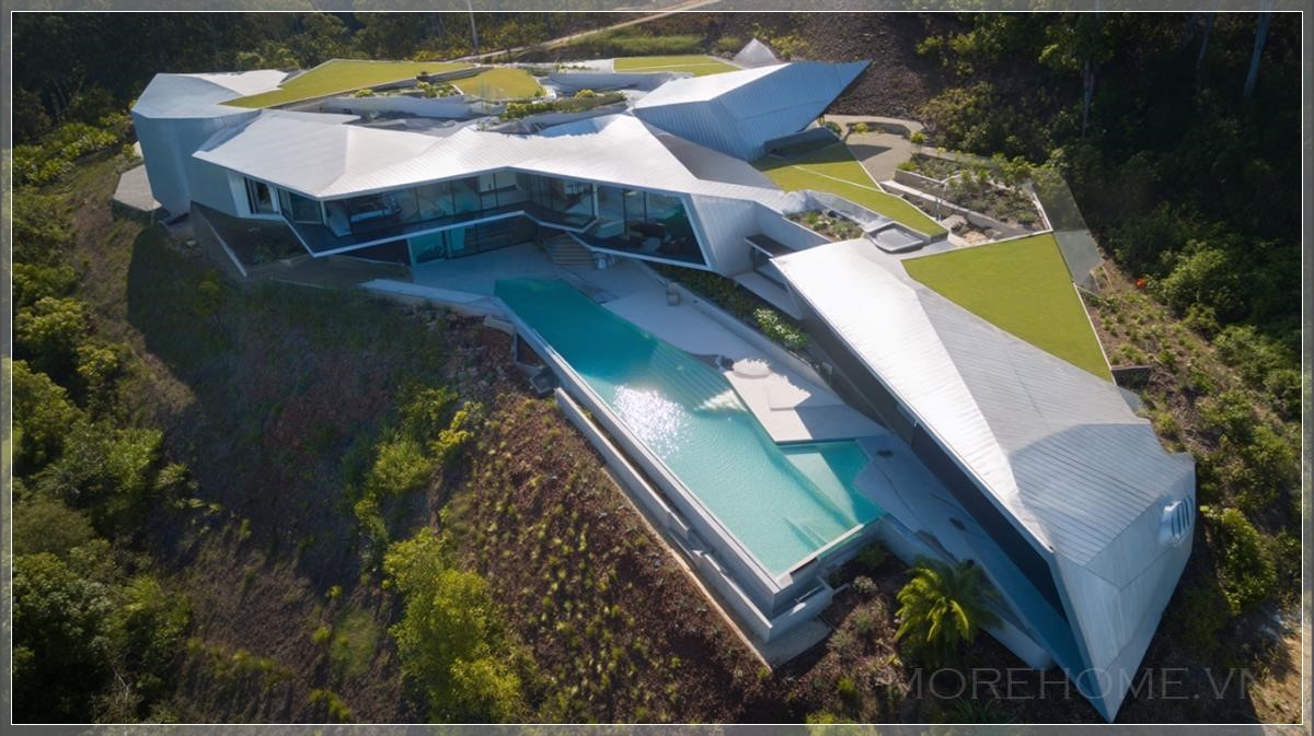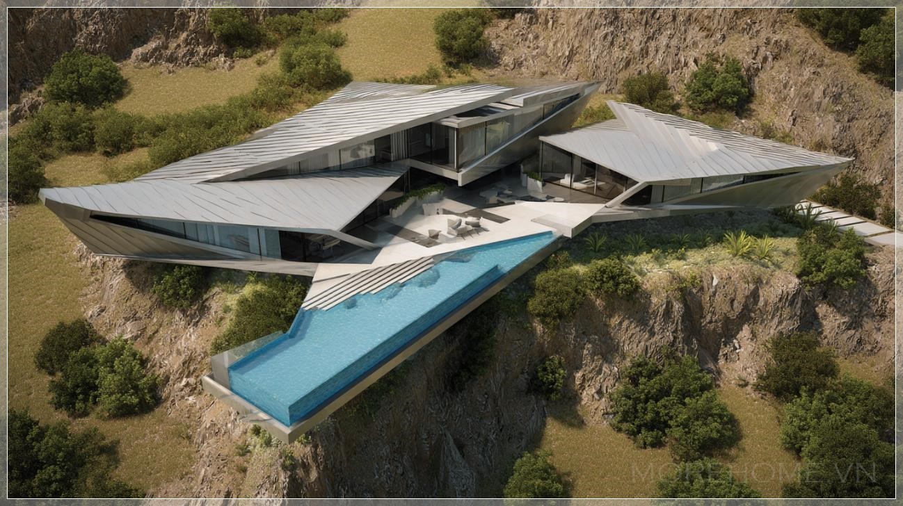 Từ tầm nhìn aerial, ngôi nhà cantilever với hồ bơi vô cực này như một viên kim cương khổng lồ được đặt trên đỉnh núi, toả sáng và thu hút mọi ánh nhìn. Đây không chỉ là một công trình kiến trúc mà là tuyên ngôn về khả năng vô hạn của con người trong việc sáng tạo và chinh phục không gian sống.