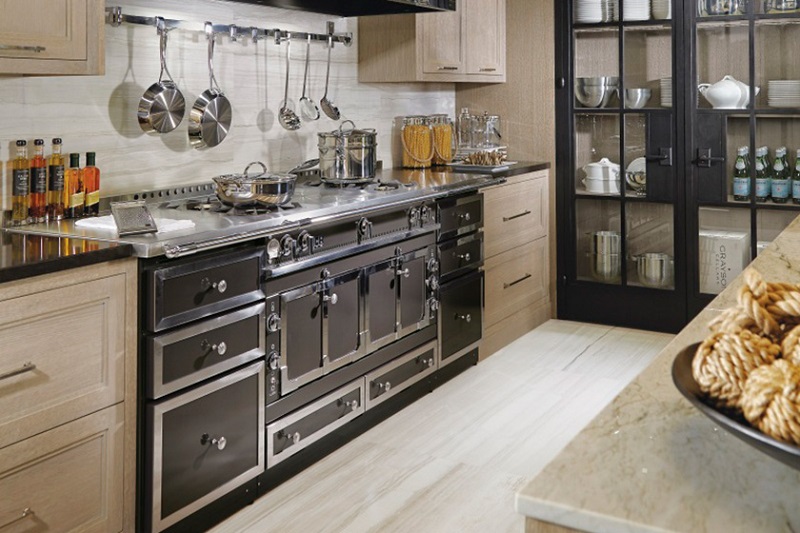 Căn bếp sáng choang với những nồi niêu xoong chảo bằng inox và những chi tiết tủ bếp. Thiết kế nội thất phòng bếp này mang đến sự cao cấp, gọn gàng. Chắc chắn rằng chủ nhân của nó là một người rất yêu ẩm thực và nấu ăn và cũng là một người đòi hỏi cao trong từng món ăn.