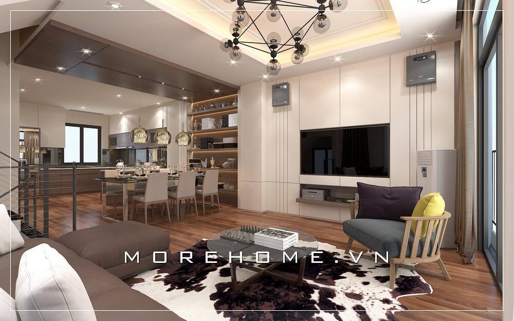 Mẫu thiết kế phòng khách liền bếp ăn đẹp tạo cảm giác tiện nghi, thông thoáng cho không gian nhà phố
