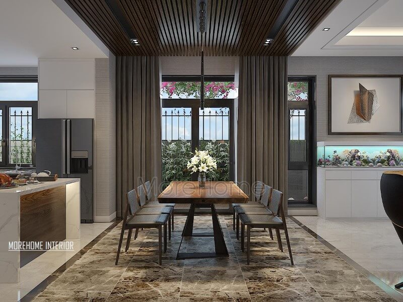 Thiết kế nội thất phòng bếp ăn biệt thự đơn giản, hiện đại và tiện nghi