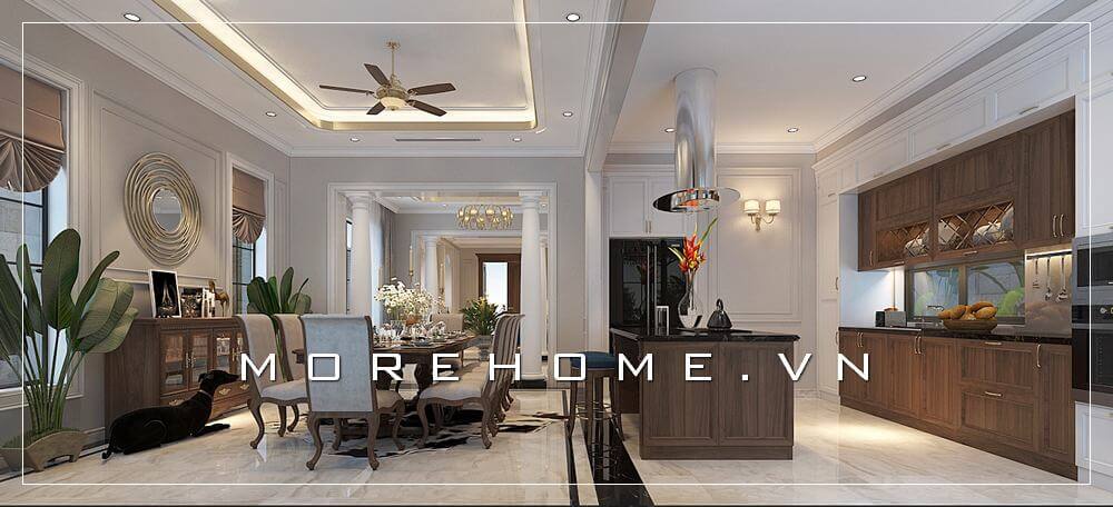 Thiết kế nội thất phòng bếp ăn biệt thự theo phong cách tân cổ điển sang trọng và đẳng cấp